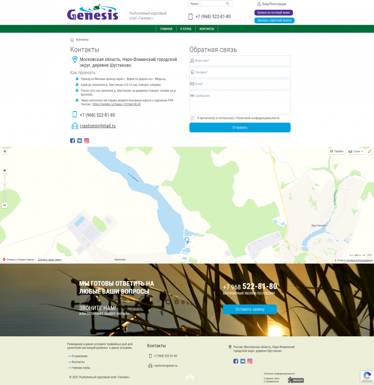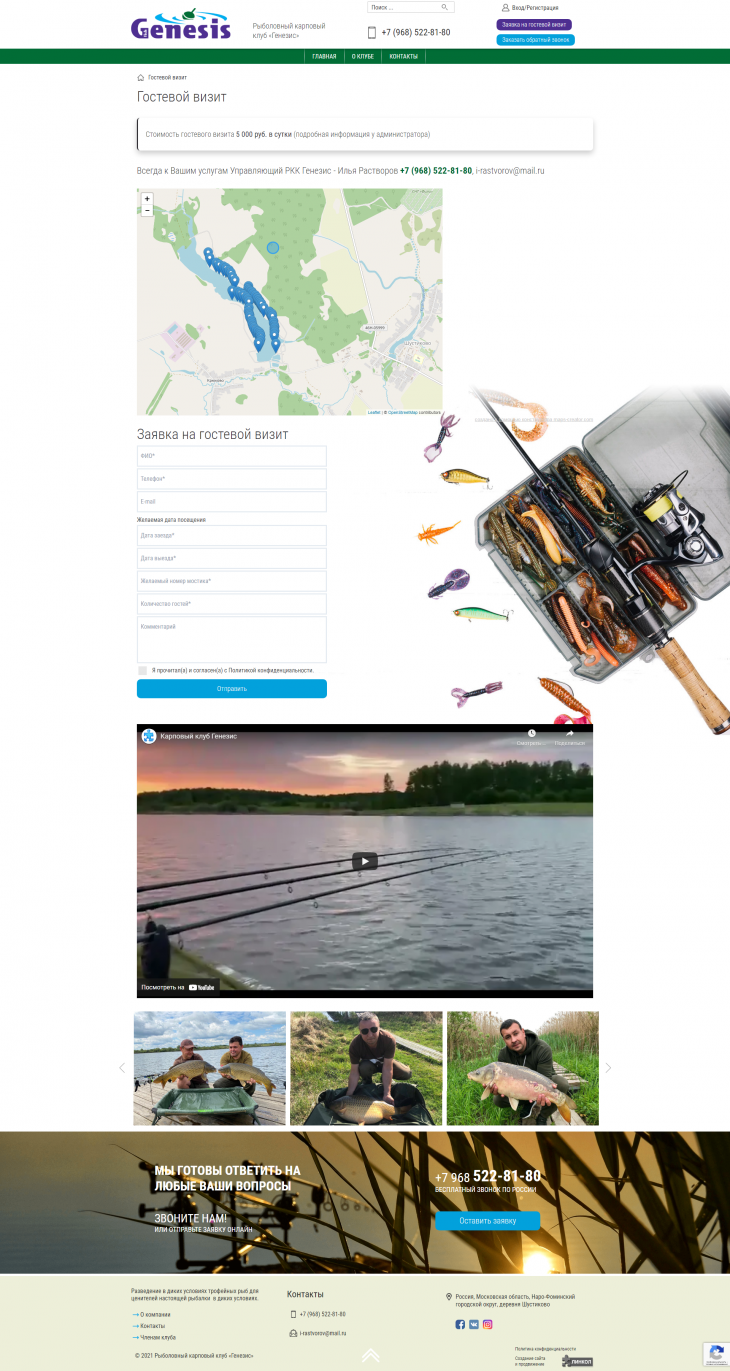 Лучшее место глэмпинга с фокусом на дикую рыбалку с возможностью поймать трофейную рыбу недалеко от Москвы. Идеальное место для тренировок по карпфишингу. Уникальный природный ландшафт, зеркало водоема – 52 га, территория 117 Га, охраняемая, граничит с лесами Нарофоминского района и Калужской области, создает атмосферу дикого нетронутого кусочка природы.