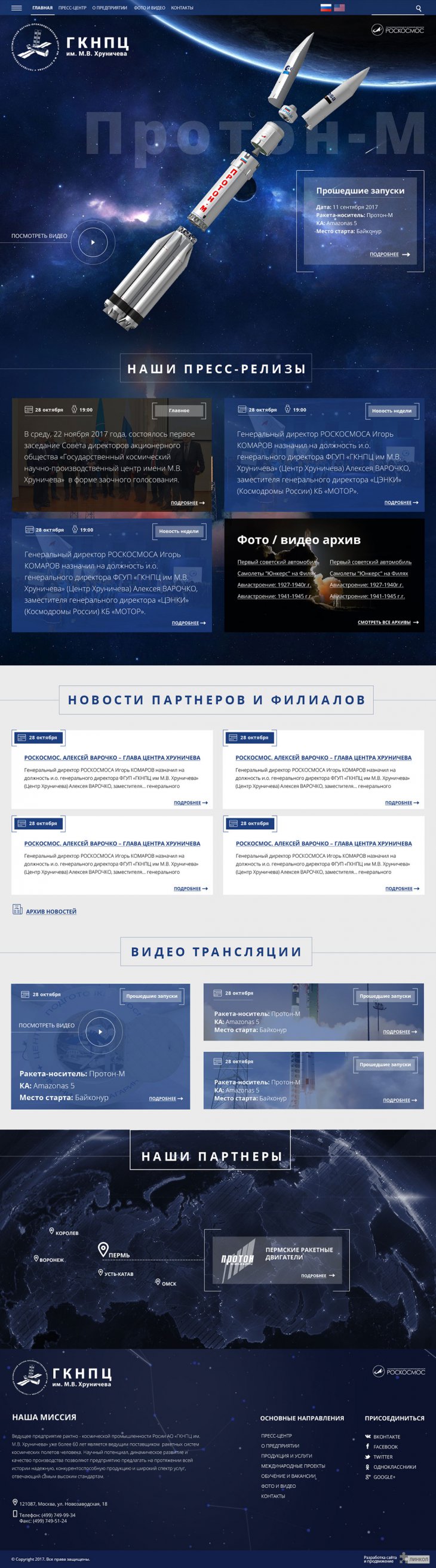 В настоящее время АО «ГКНПЦ имени М.В.Хруничева» (входит в Госкорпорацию «РОСКОСМОС») - ведущее предприятие российской ракетно-космической отрасли; один из мировых лидеров в области разработки и серийного производства космических средств выведения (ракет-носителей тяжелого класса, разгонных блоков и их систем), а также крупногабаритных орбитальных модулей; разработчик и серийный изготовитель ракет-носителей тяжелого класса «Протон-М» с разгонным блоком «Бриз-М», семейства ракет-носителей различной грузоподъемности «Ангара», ракеты-носителя легкого класса «Рокот».