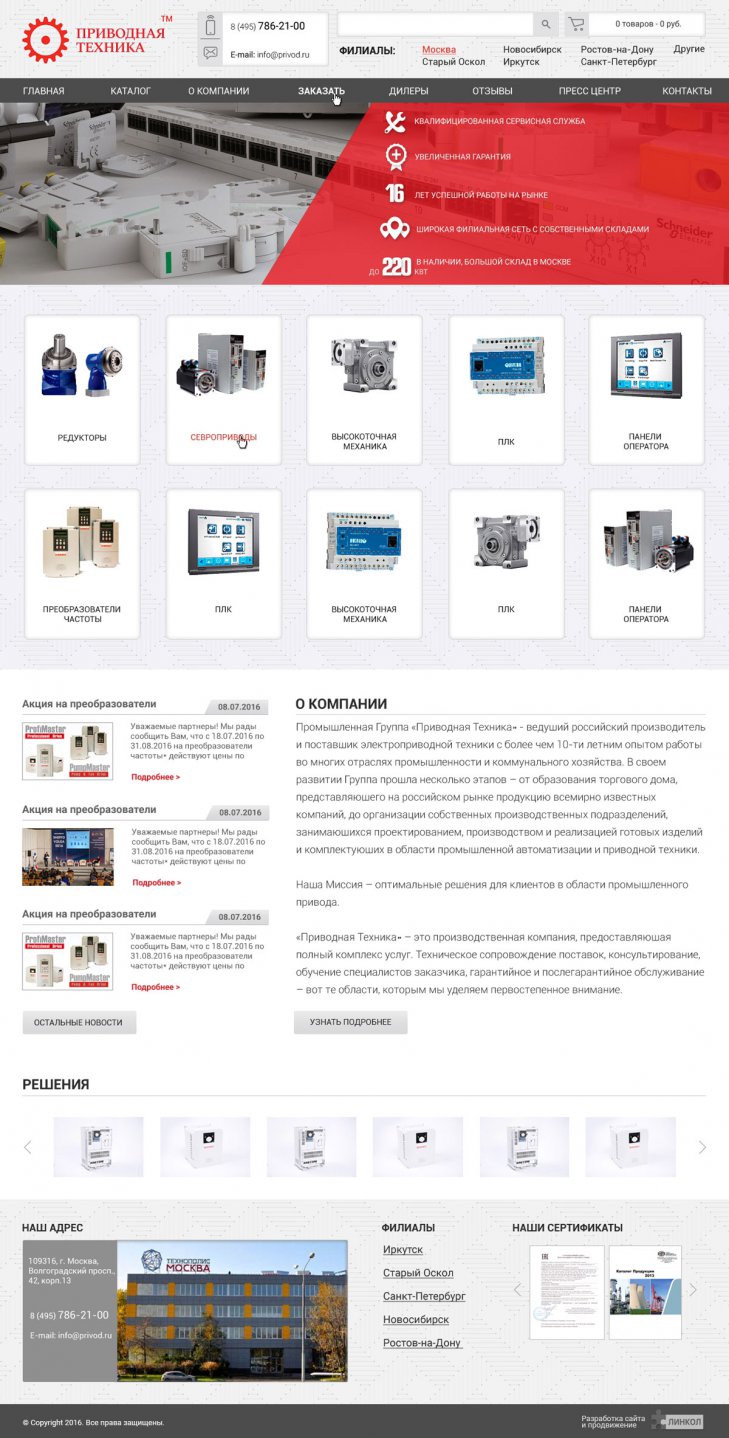 Промышленная Группа «Приводная Техника» - ведущий российский производитель и поставщик электроприводной техники с более чем 17-ти летним опытом работы во многих отраслях промышленности и коммунального хозяйства. В своем развитии Группа прошла несколько этапов – от образования торгового дома, представляющего на российском рынке продукцию всемирно известных компаний, до организации собственных производственных подразделений.