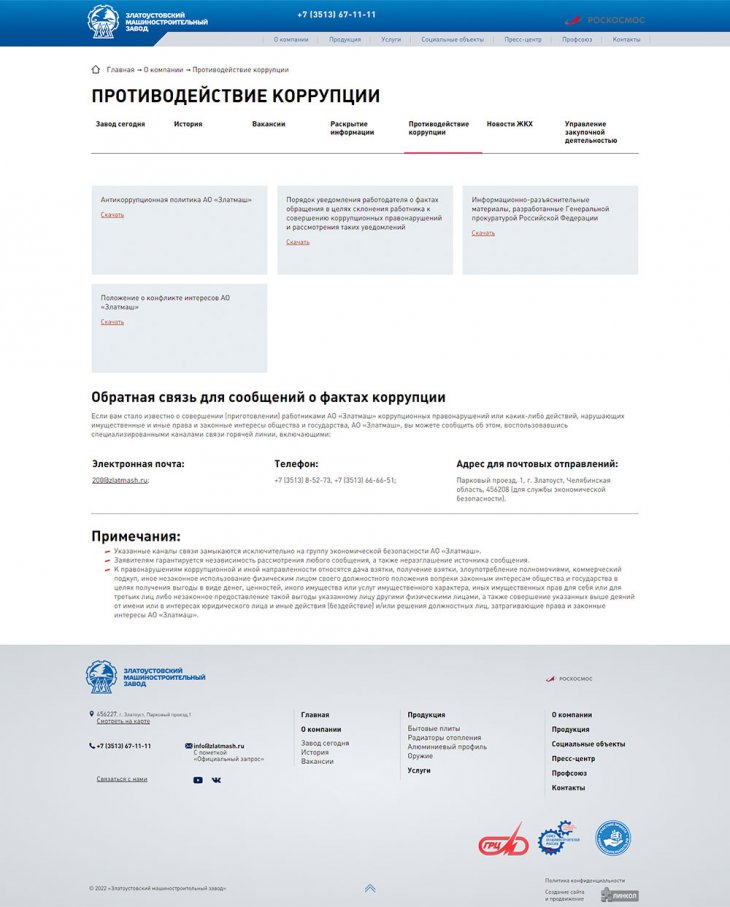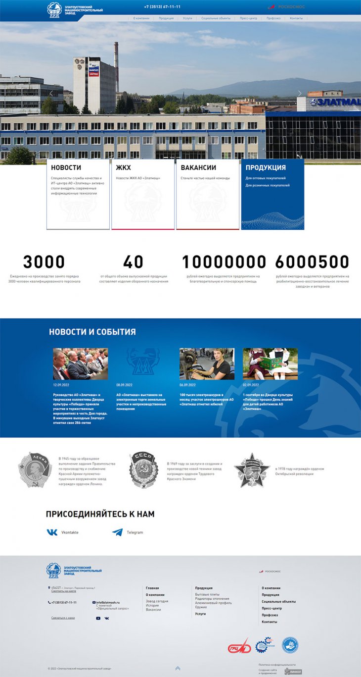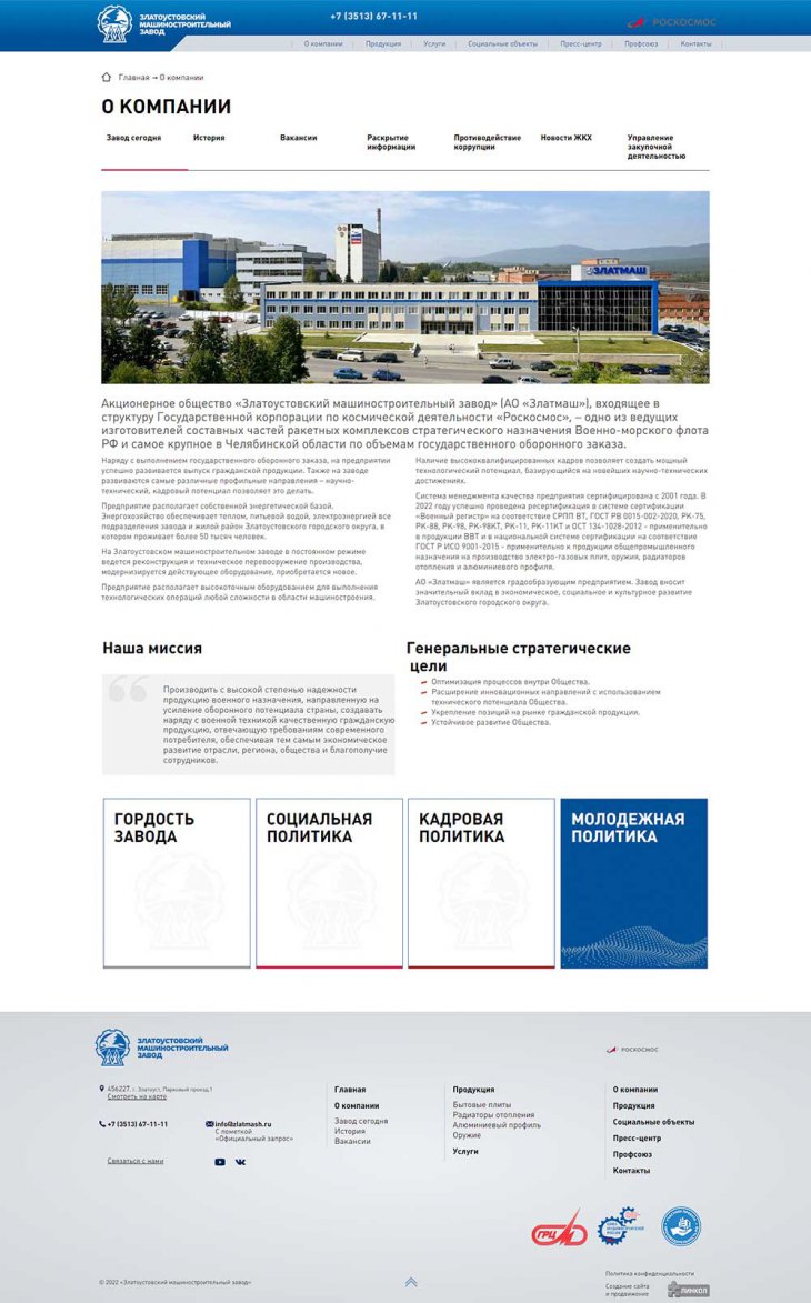 Акционерное общество «Златоустовский машиностроительный завод» (АО «Златмаш»), входящее в структуру Государственной корпорации по космической деятельности «Роскосмос», – одно из ведущих изготовителей составных частей ракетных комплексов стратегического назначения Военно-морского флота РФ и самое крупное в Челябинской области по объемам государственного оборонного заказа.