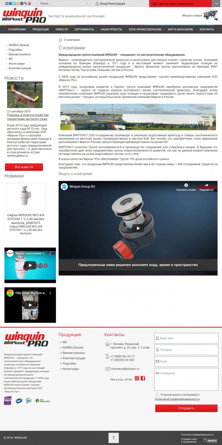 Виркэн - производитель сантехнической арматуры и аксессуаров для ванных комнат, туалетов, кухонь. Компания основана во Франции (Каркфу) в 1977 году и в настоящий момент занимает лидирующие позиции на международном рынке сантехнической продукции . Десять филиалов группы расположены во Франции, ЮАР, Испании, Китае, Португалии, Румынии, Англии и России.