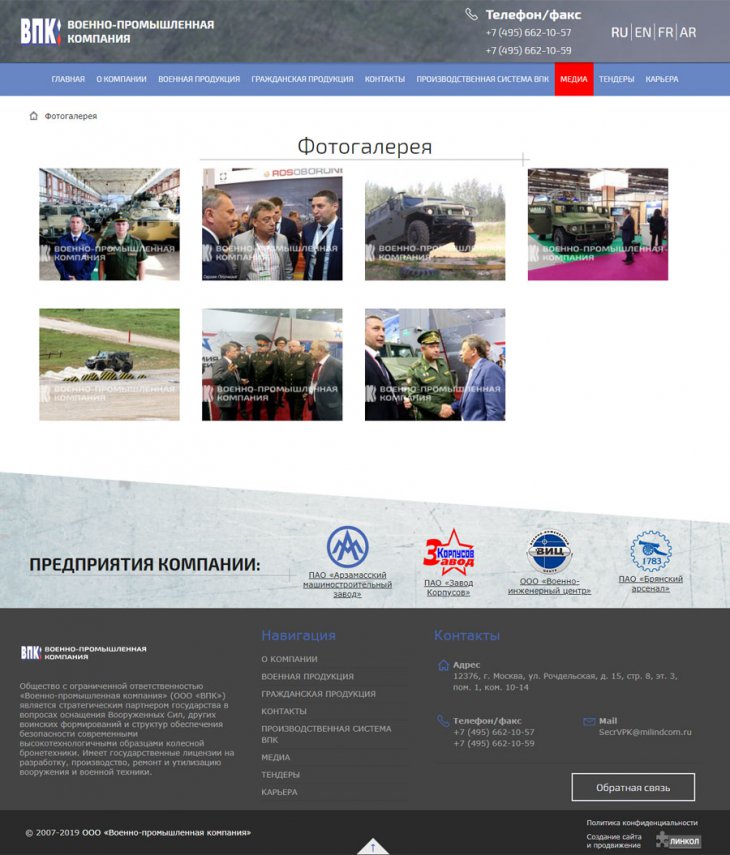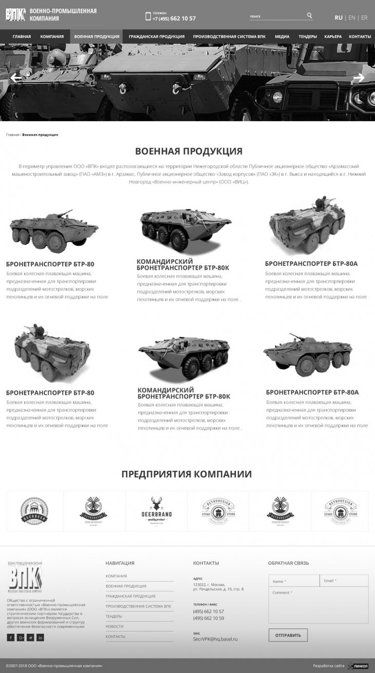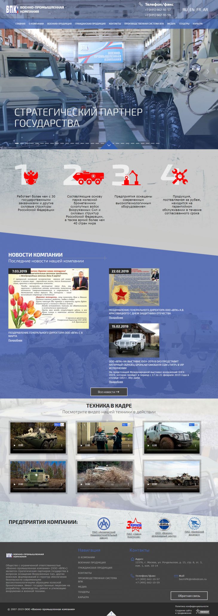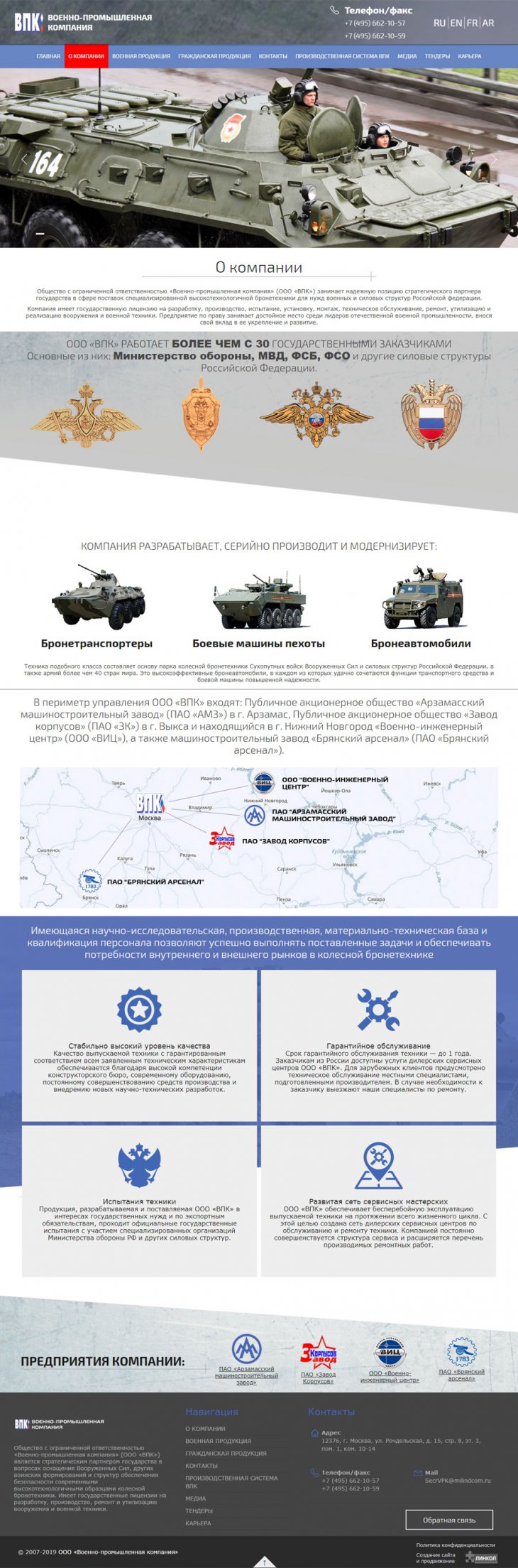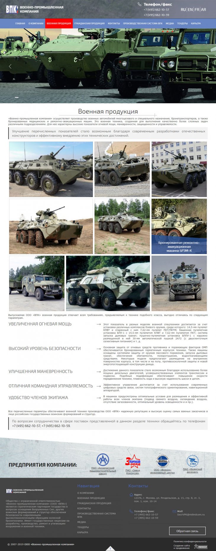 Общество с ограниченной ответственностью «Военно-промышленная компания» (ООО «ВПК») занимает надежную позицию стратегического партнера государства в сфере поставок специализированной высокотехнологичной бронетехники для нужд военных и силовых структур Российской федерации. Компания имеет государственную лицензию на разработку, производство, испытание, установку, монтаж, техническое обслуживание, ремонт, утилизацию и реализацию вооружения и военной техники.