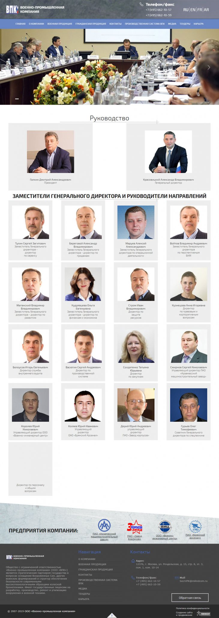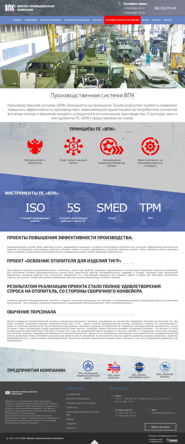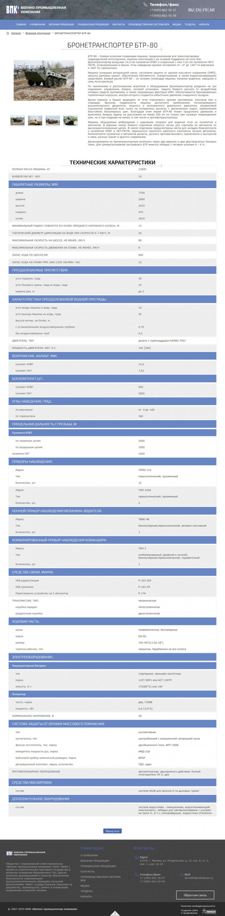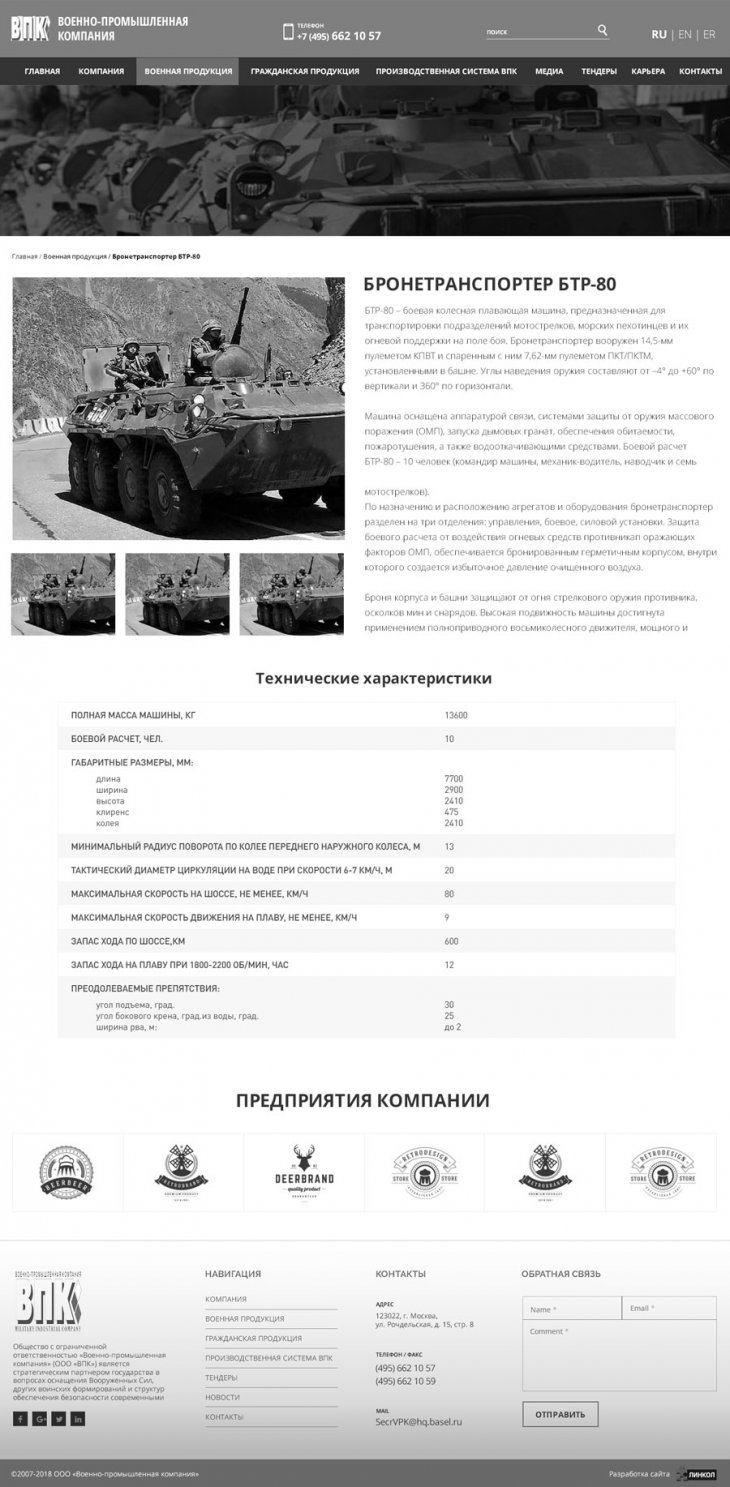 Общество с ограниченной ответственностью «Военно-промышленная компания» (ООО «ВПК») занимает надежную позицию стратегического партнера государства в сфере поставок специализированной высокотехнологичной бронетехники для нужд военных и силовых структур Российской федерации. Компания имеет государственную лицензию на разработку, производство, испытание, установку, монтаж, техническое обслуживание, ремонт, утилизацию и реализацию вооружения и военной техники.